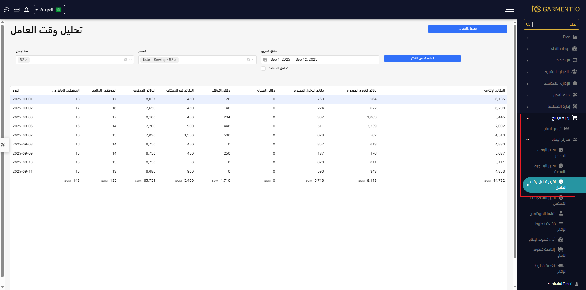 تمت إضافة تقرير جديد يتيح تحليل وقت العاملين داخل المصنع بدقة.