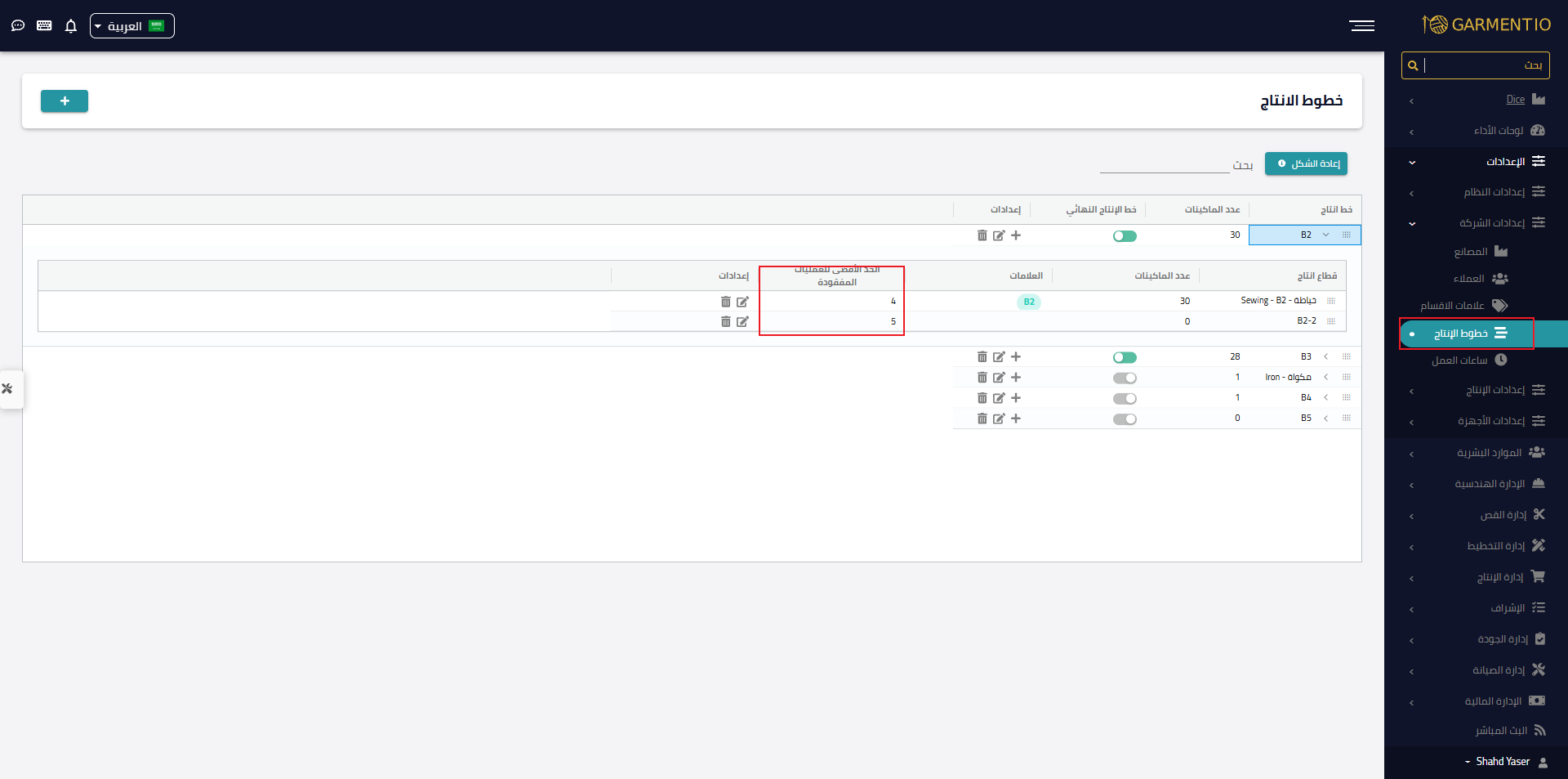 عند بدء تشغيل خط أو قطاع جديد، قد يحتاج العمال بعض الوقت للتعوّد على استخدام أجهزة Garment IO، لذا يمكنك رفع الحد مؤقتًا إلى أن يعتادوا على النظام.