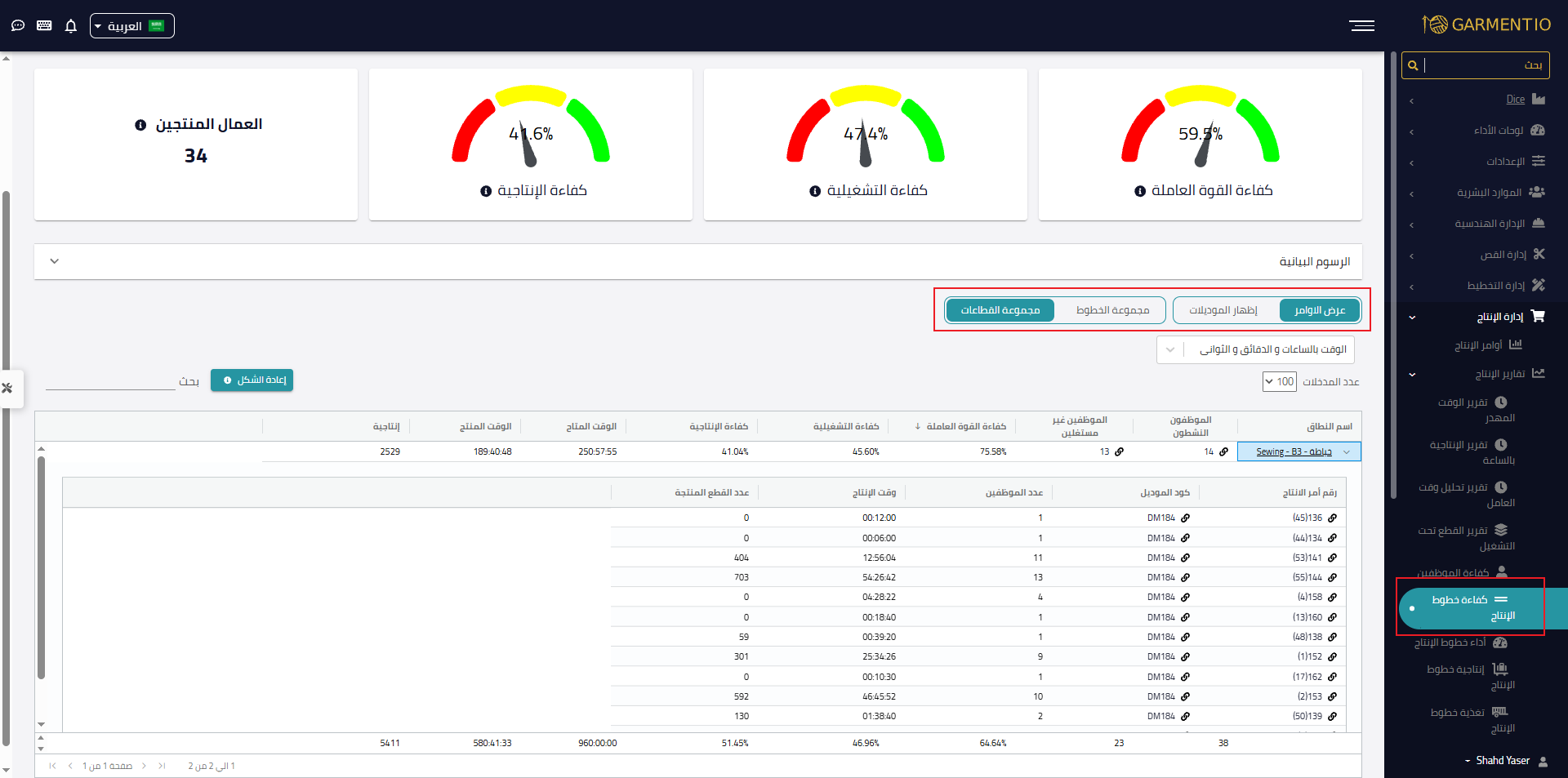 إمكانية عرض التفاصيل حسب الموديلات وأوامر الإنتاج.
