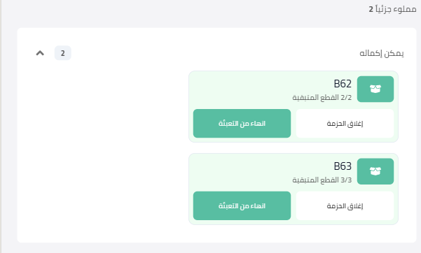 عدد القطع المعبأة مقابل المطلوبة