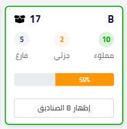 إذا توفرت قطع كافية لتعبئة صندوق كامل، يظهر زر “املأ الصندوق” باللون الأخضر.