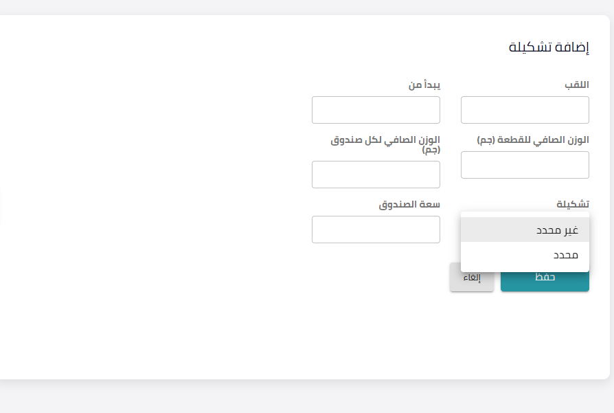 غير محددة (Undefined) – عندما لا توجد قواعد مسبقة، ويقوم العامل بتحديد التفاصيل أثناء عملية التعبئة على التابلت