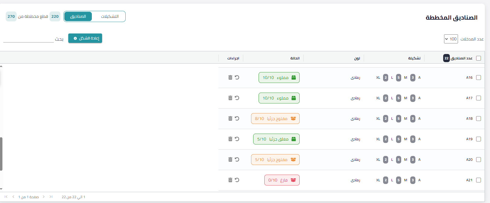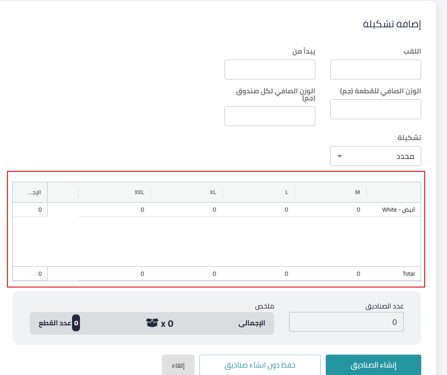 يمكن تعديل أو حذف أي تشكيلة طالما لم يتم تعبئة أي صندوق بداخلها.