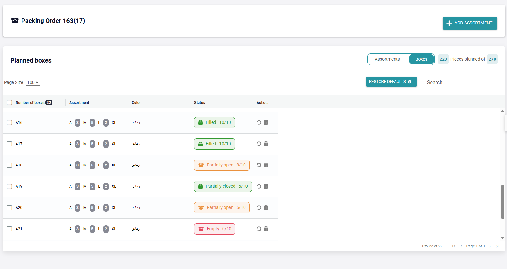 Save as Draft – Save the assortment setup and generate boxes later, closer to the packing stage.