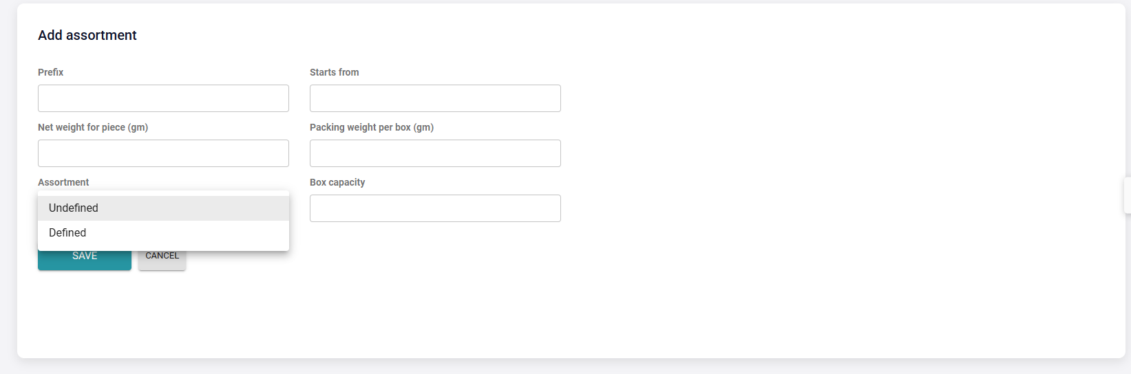 If it’s the first time adding packing rules for this order, the page will appear empty — showing “No Assortments.”