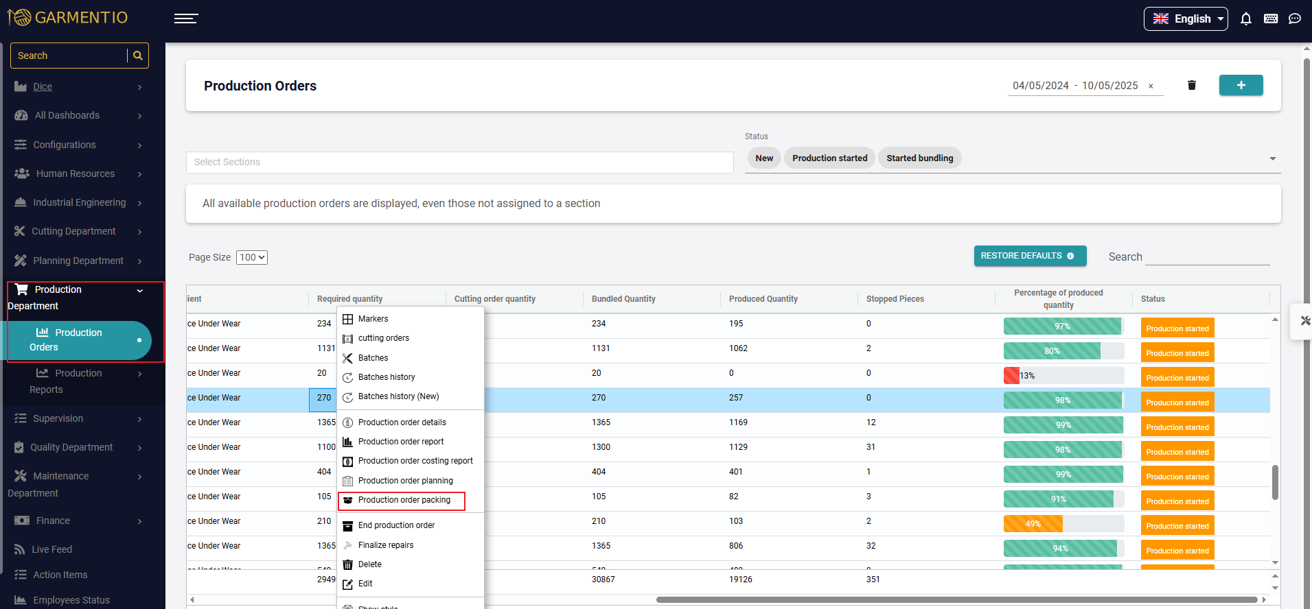 After setting up workstations for packing, the next step in the Packing Module is to define Packing Rules for each Production Order.