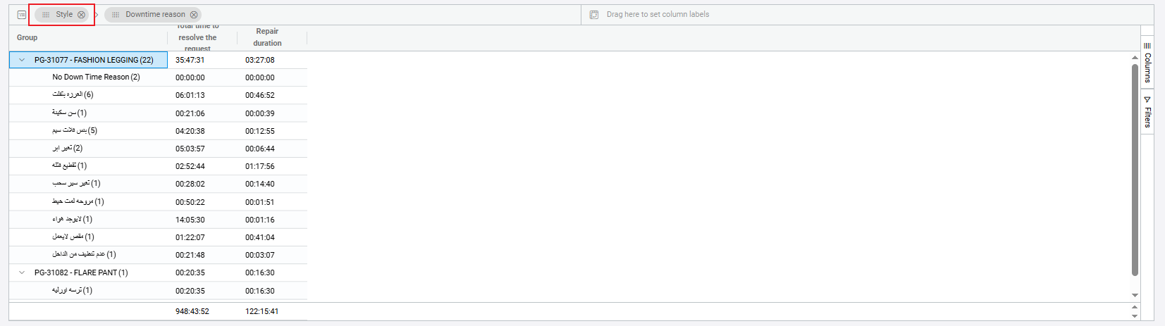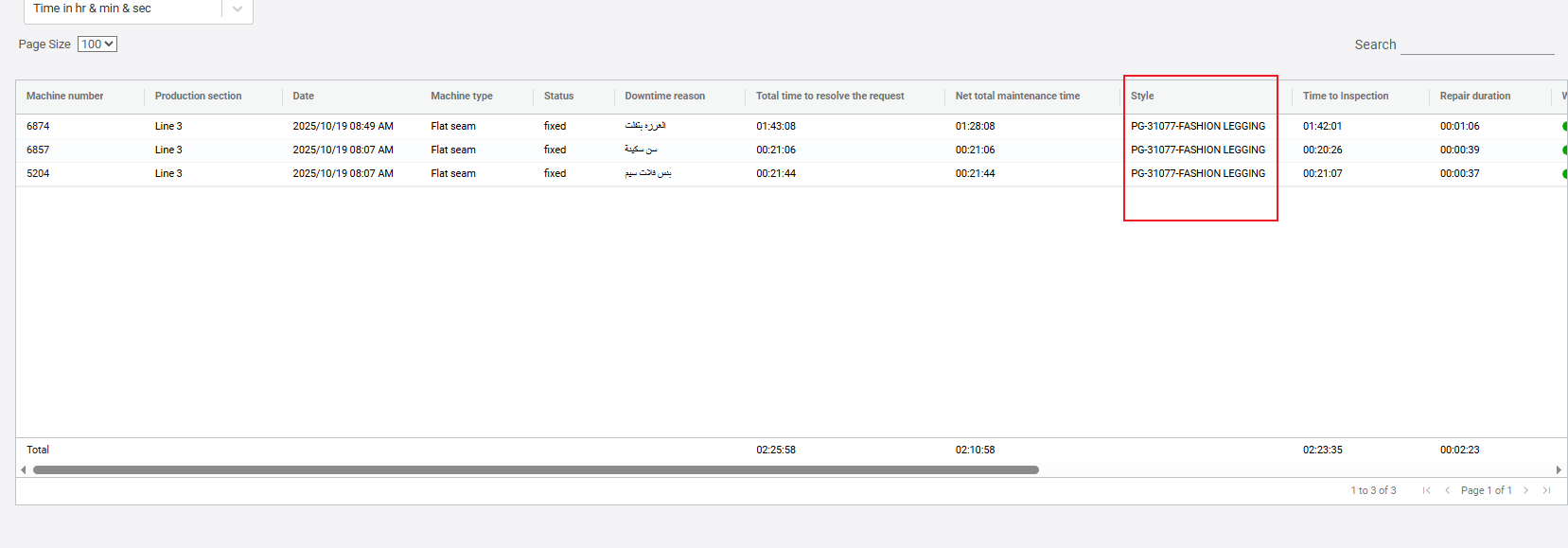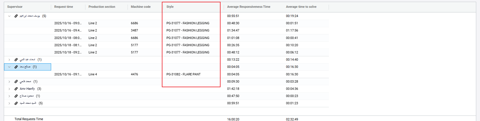 Maintenance managers can now see the last style (ู ูุฏูู) that was running on a section before a machine stopped.