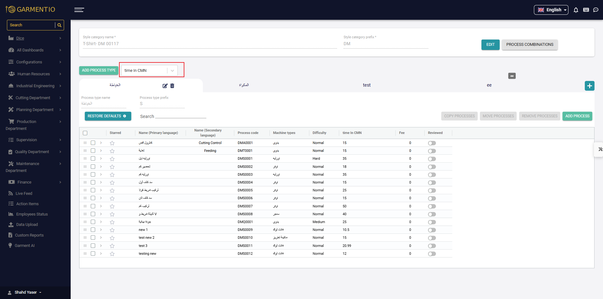 You can now enter and view standard processes time in CMN (Centi-Minutes) — a time unit widely used in Moroccan factories.