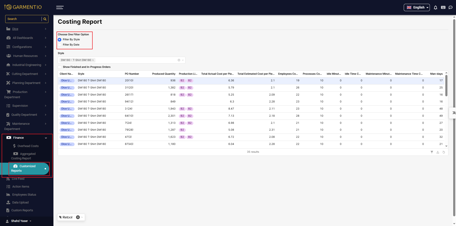 A new Costing Report has been added inside the Finance Module → Custom Reports.